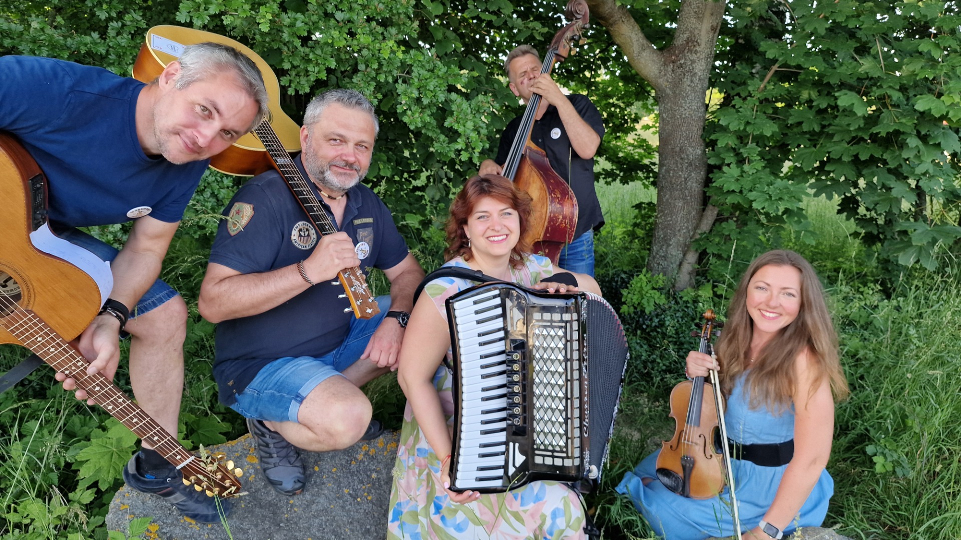 Hudba v ryze živém podání v nástrojové sestavě: sólová kytara, akordeon, housle, doprovodná kytara, kontrabas.